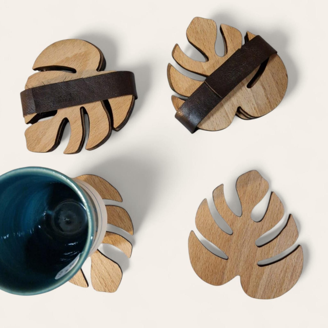 Apportez une touche végétale et élégante à votre table avec ce lot de 4 dessous de verre en forme de feuille Monstera.